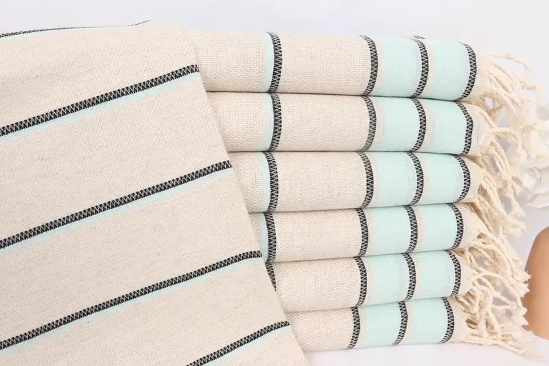 ストライプ ティータオル ミント リネン 20x40 インチ、キッチン&ティータオル