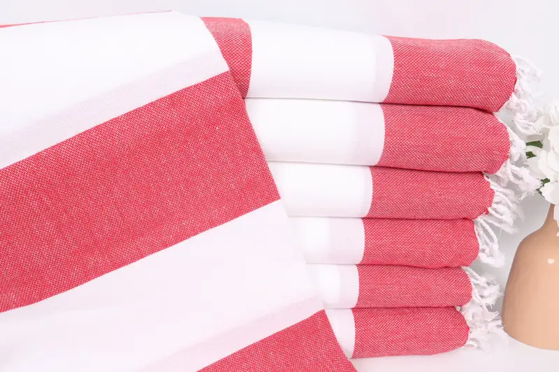 キッチンタオル ストライプ ディッシュタオル レッドコットン ティータオル 24x40インチ
