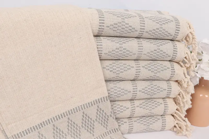 ダークグレーキリムデザインリネンティータオル、20x40インチ