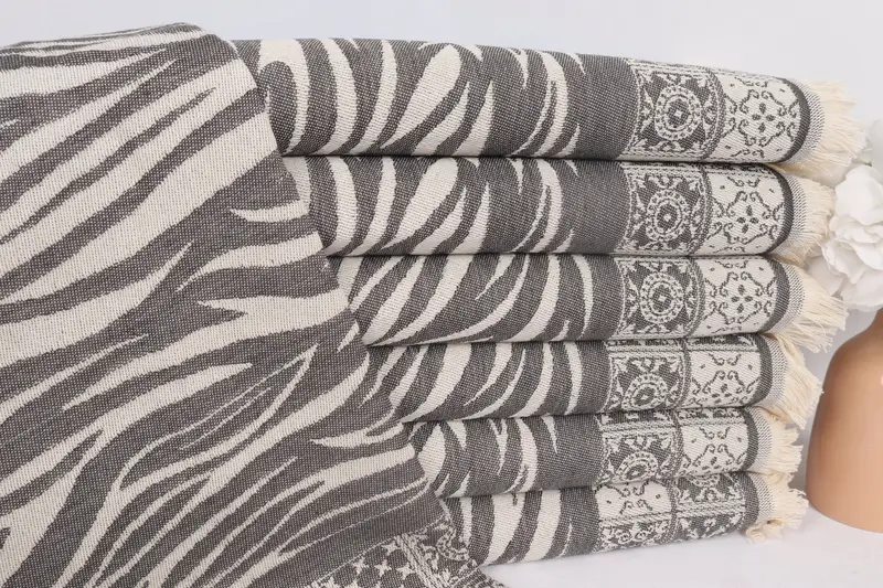 トルコ ハンドタオル モノグラム キッチンタオル ストライプ ダークグレー ベージュ 20x28 インチ