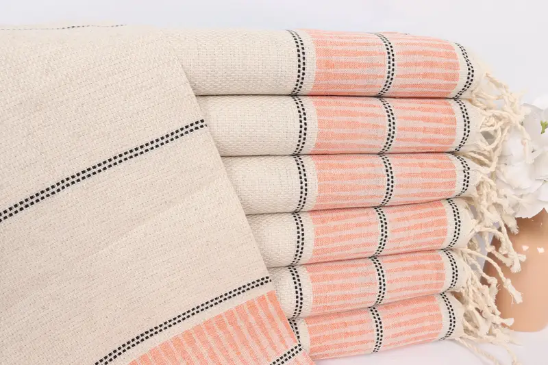オレンジ リネン ティータオル ストライプ ハンドタオル モノグラム入り 20x40 インチ