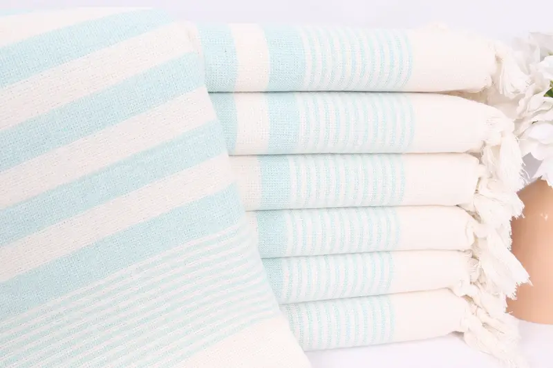 ストライプテリーハンドタオル コットン ウォーターグリーン 18x36インチ