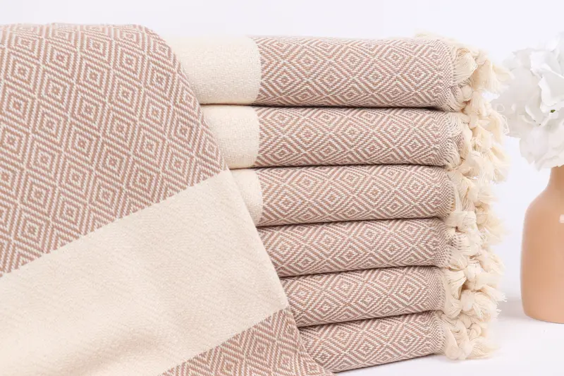 トルコタオル ビーチパーソナライズされたライトブラウンダイヤモンドタオル、40x71インチ