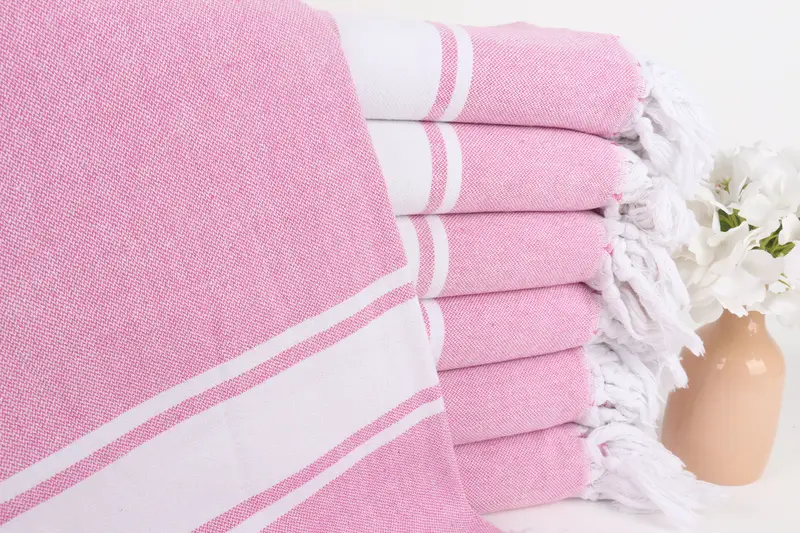 モノグラムビーチタオル ピンクストライプ 40x71インチ トルコ綿