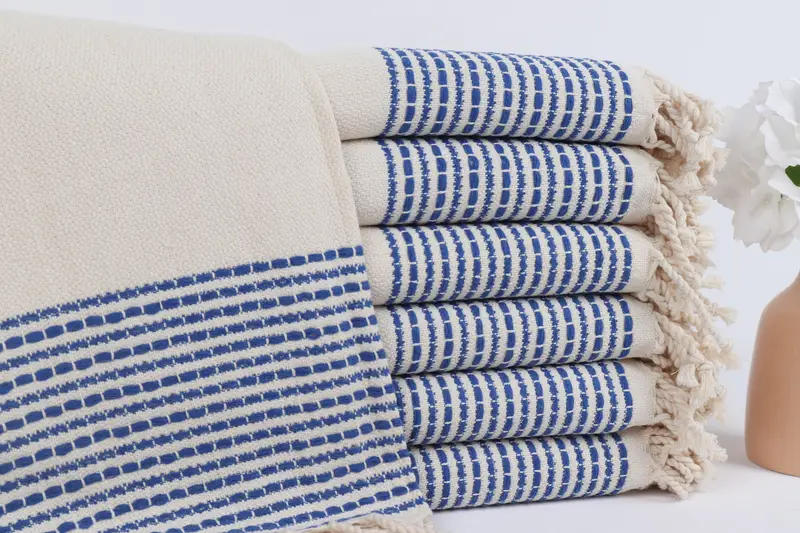 トルコビーチタオル パーソナライズされたサックスブルーストライプ、36x69インチ