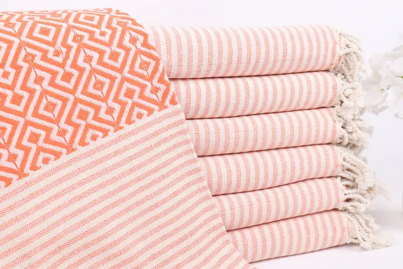 トルコ製ビーチタオル オレンジ ダイヤモンド、38x75インチ