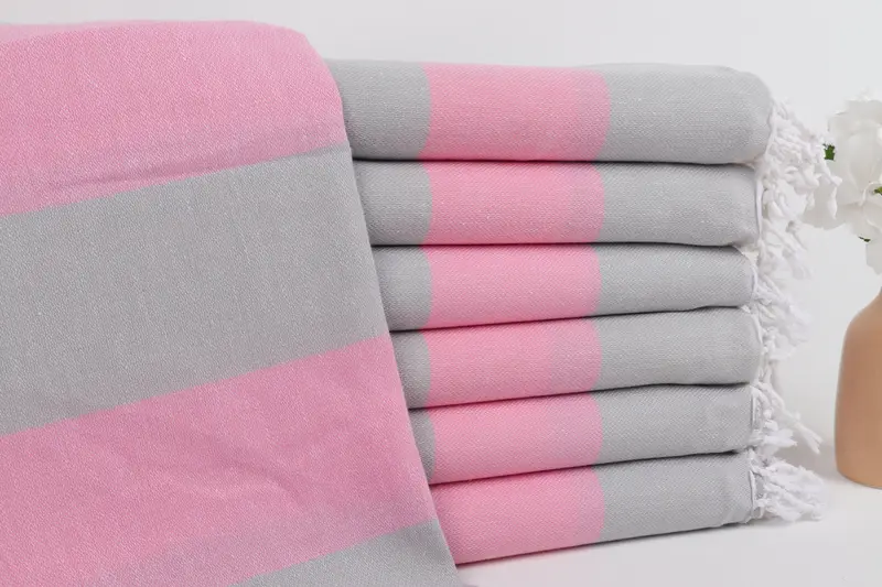 パーソナライズされたビーチタオル ピンクグレーストライプ、40x71インチ