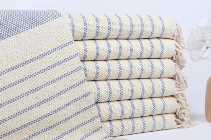 トルコタオル ビーチ グレーイエロー 幾何学模様 40x71 インチ