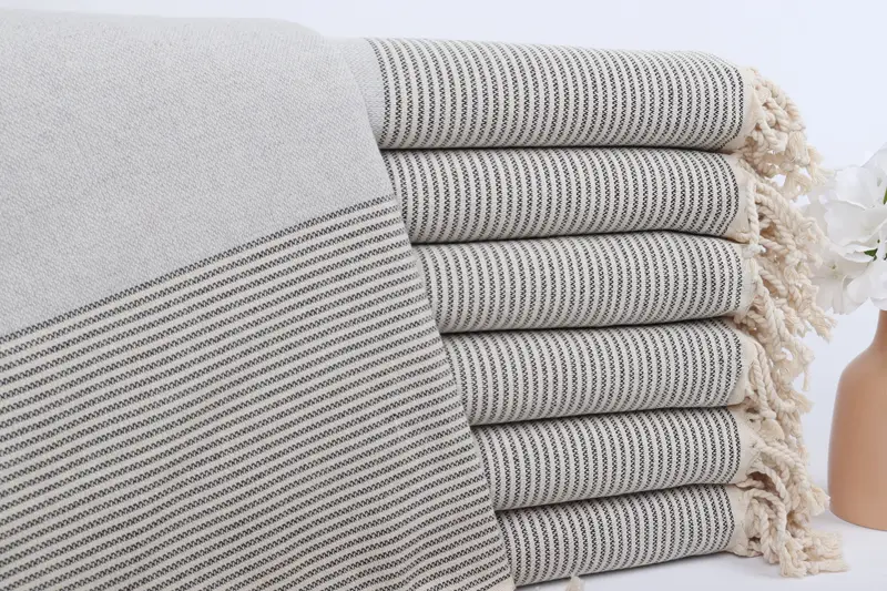 カスタムビーチタオル ライトグレーブラックストライプ、40x71インチ