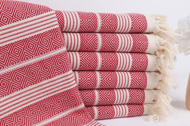 カスタムビーチタオル パーソナライズされたトルコ綿 レッド、38x69インチ