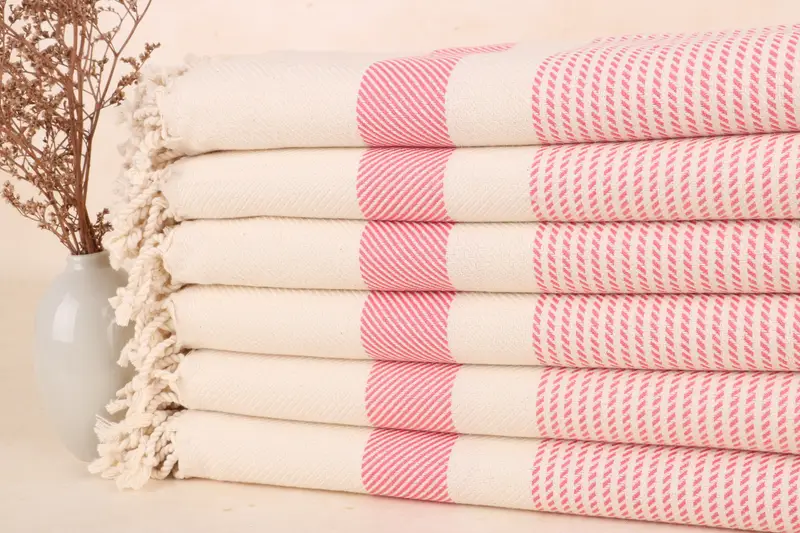 この手織りバスタオルの主素材は、吸水性と耐久性に優れたトルコ産オーガニックコットンです。これらの特性により、乾燥が早く、長期間の使用が保証されます。