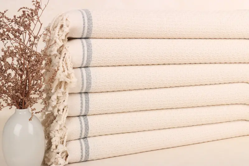ストライプハンドタオル、18x38インチダークグレーオーガニックコットンキッチンタオル