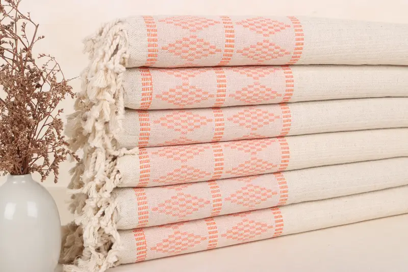 優れた吸水性と軽さが特徴のトルコ産オーガニックコットン100%のふきんです。重さは 120 グラム、寸法は 20x40 インチ (50x100 cm) で、手織りの性質により許容誤差は最大 2.5 cm で、さまざまな用途での効率性を確保します。カスタム刺繍オプション、配送前に事前洗浄、および注文後 2 ~ 5 日という迅速な配送がその魅力の不可欠な要素です。さらに、フリンジのないタオルやカスタム デザインに関する特定のリクエストにも、適切な納期と注文数量で対応できます。