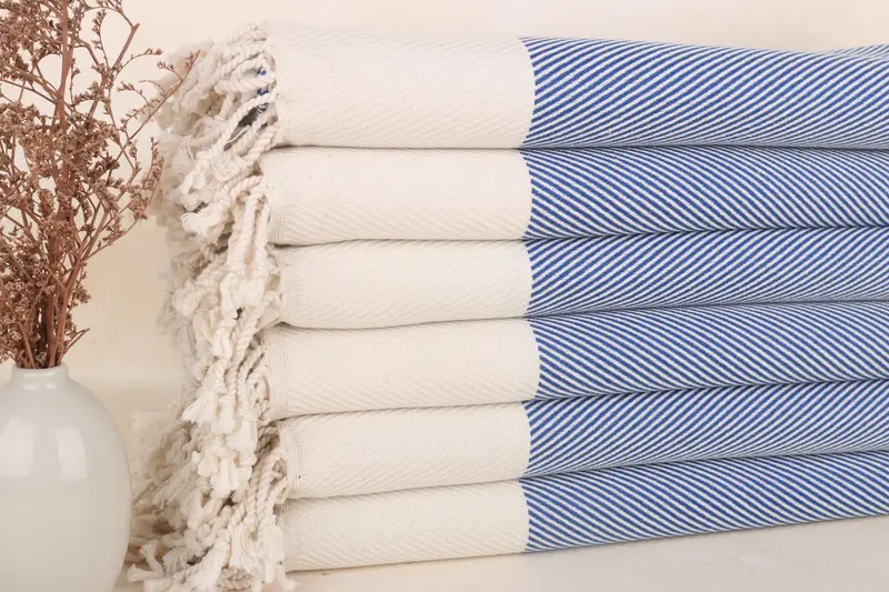 トルコ産オーガニックコットンがタオルの特徴となっており、高い吸水性と柔らかさを実現しています。手織り機で丁寧に織られており、重さは 430 グラム、寸法は 40x71 インチ (100x180 cm) ですが、手織りの誤差は 1 ~ 2.5 cm です。カスタム刺繍オプションにはモノグラム、名前、ロゴが含まれており、米国の倉庫またはトルコから発送されます。