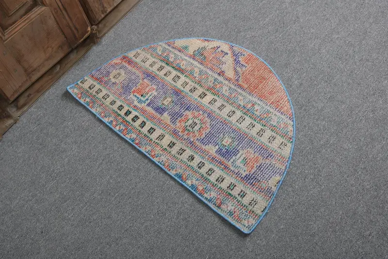 トルコ 2.4x1.4 フィート ラグ、ラウンド ヴィンテージ ラグ、ブルー カモフラージュ ウール ラグ