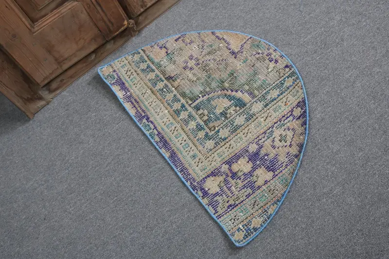 ターキッシュ ラグ 2.4x1.4 フィート、ブルー グリーン ペルシャ ウール ヴィンテージ ラグ