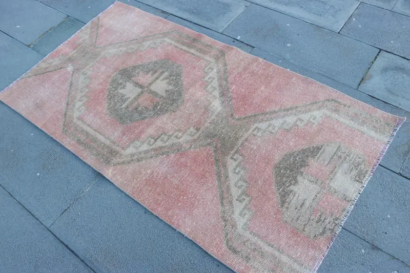 store image2.7x10 ft手作りトルコランナーラグ、ヴィンテージベージュウールオリエンタルラグ