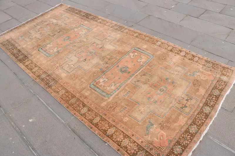 ヴィンテージラグ、4.3x9.2フィートのトルコラグ、ブラウンオンブレウールラグ