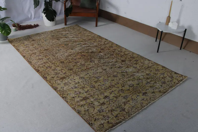 ヴィンテージ トルコ エリア ラグ 4.7x8 フィート、ブラウン ウール ラグ