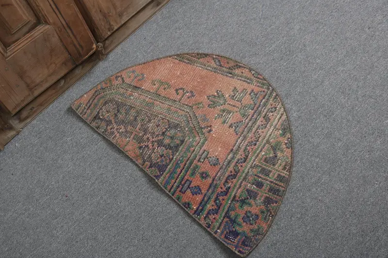 ヴィンテージラウンドラグ、2.5x1.5フィートトルコラグ、ブルーフローラルウールラグ