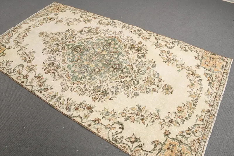 4.2x7.8フィートラグ、トルコラグ、ヴィンテージグリーンウール迷彩ラグ