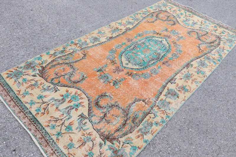 4.3x9.1フィートヴィンテージラグ、オレンジ南西部トルコウールラグ