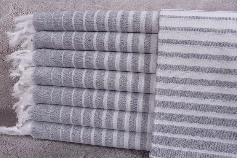 トルコ産オーガニックコットンを使用しているのが特徴のビーチタオルは、吸水性に優れ、効率的な吸湿性と速乾性を実現しています。手織り技術により、寸法は 40x69 インチ (100x175 センチメートル) で、公差は最大 5 cm で、重さは約 240 グラムです。各ピースは防縮加工が施されているため、洗濯後も一定のサイズ感が得られます。