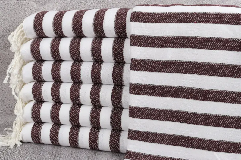トルコタオル オーガニックコットン バーガンディストライプ 36x71インチ
