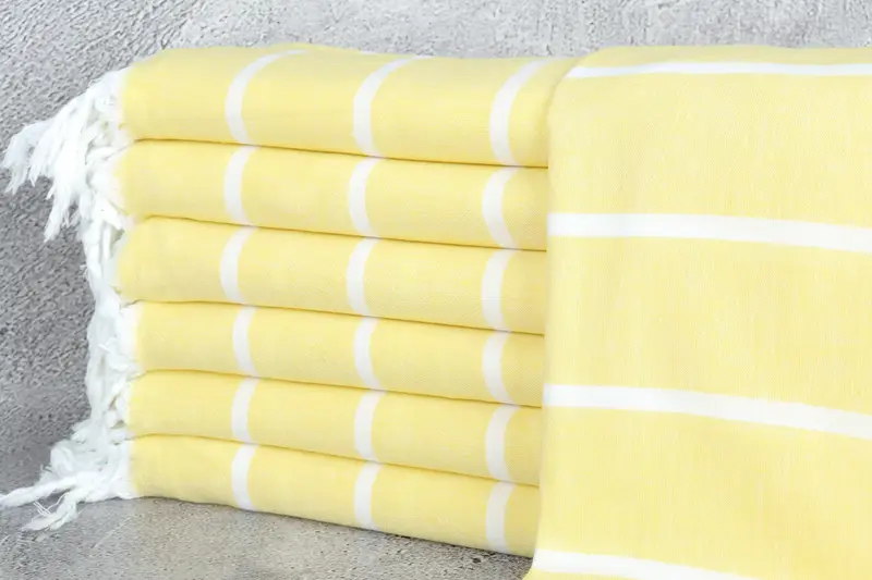 トルコのオーガニックコットンを手作業で織り上げているため、高い吸水性と耐久性を誇ります。これらのタオルの寸法は 36 x 71 インチまたは 90 x 180 センチメートルで、重さは約 180 グラムです。手織りの公差は最大 5 cm の誤差が許容されます。
