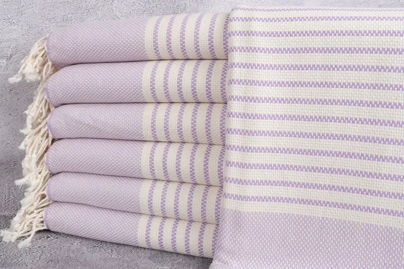 トルコのビーチタオルは通常、環境に優しい高級トルコ綿から作られており、優れた吸収性と耐久性を保証します。有機繊維組成を特徴とするこれらのタオルは、細心の注意を払って織られており、製織技術により製品の誤差は 1 ~ 2.5 センチメートルとなります。これらのタオルの寸法は、40x75 インチ (100x190 センチメートルに相当)、重さ 400 グラムに標準化されています。