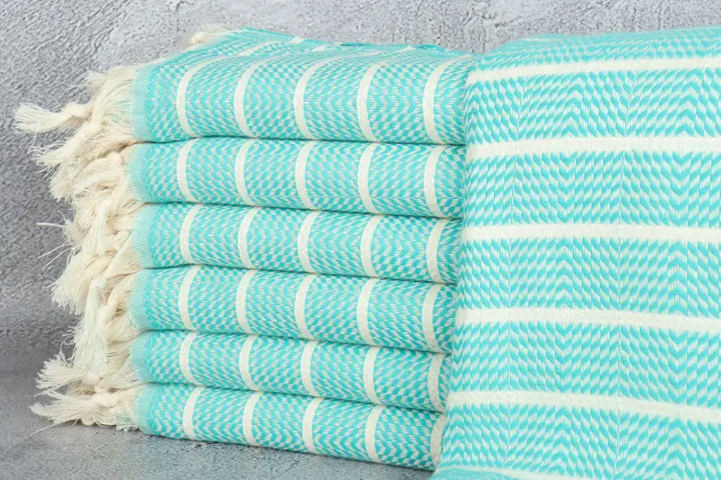 トルコのオーガニックコットンから作られたビーチタオルは、吸水性と耐久性が特徴です。軽量でありながら丈夫な繊維構成により、タオルは速乾性があり、メンテナンスが簡単です。