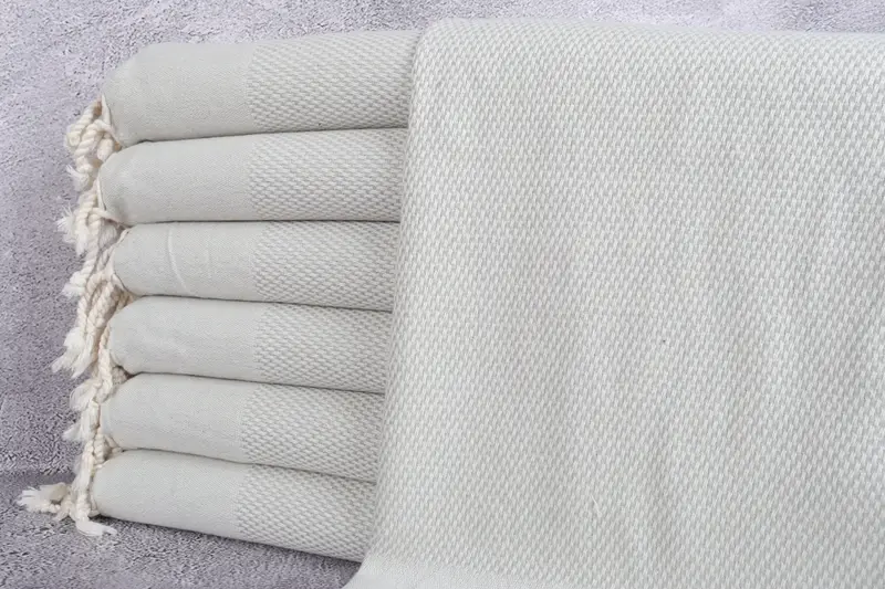 このハンドタオルの製造にはトルコのオーガニックコットンが使用されており、高品質の製品が保証されています。軽量な性質と平織り構造が特徴のタオルのサイズは 24 x 44 インチまたは 60 x 110 センチメートルで、許容織り公差は 2 インチまたは 5 センチメートルです。重さ150グラムのこのタオルは、丁寧な手織りプロセスによって作られています。