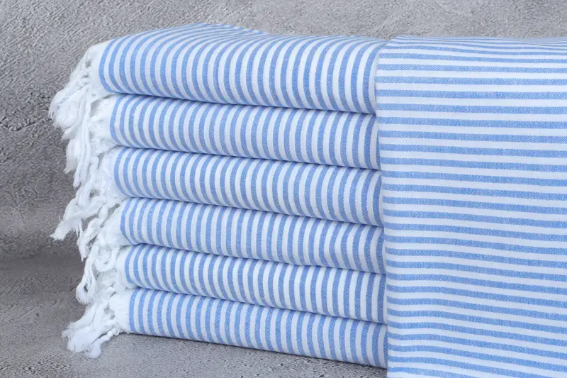 トルコビーチタオル 環境に優しいプレミアムコットン、サックスブルーストライプ、36x67インチ
