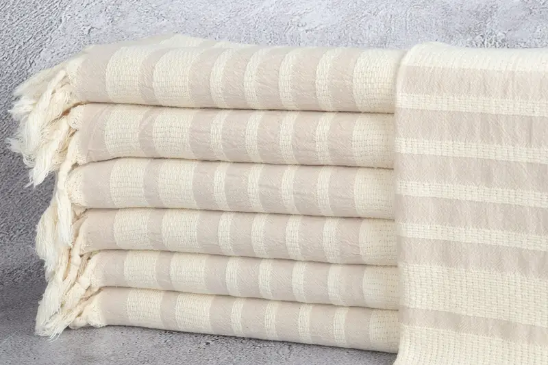 高い吸収性を確保するトルコタオルは、環境に優しい高級トルコ綿を使用し、丁寧に手織りされ、軽くて平らな生地になっています。多用途のホームテキスタイルとなるこのタオルは、16×40インチまたは40×100センチメートル、重さ100グラムで、織り方による許容誤差は2インチまたは5センチメートルです。カスタマイズは、注文プロセス中に利用できるモノグラムや刺繍などのパーソナライズオプションにまで及び、ギフトにユニークなタッチを保証します。防縮加工されたトルコタオルは、漂白剤や汚れを避けるために特別な注意を払って、手洗いまたは洗濯機で洗うことができます。柔軟剤は海外からの注文はトルコから発送されますが、米国からの注文は米国の倉庫から発送されます。