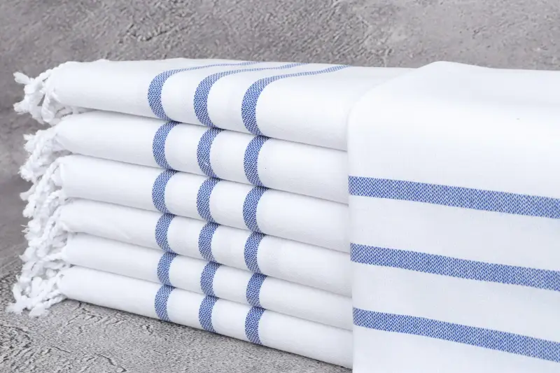 トルコハンドタオル サックスブルーストライプ刺繍、18x40インチ