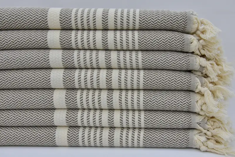 柄入り手作りブラウントルコビーチタオル、40x70