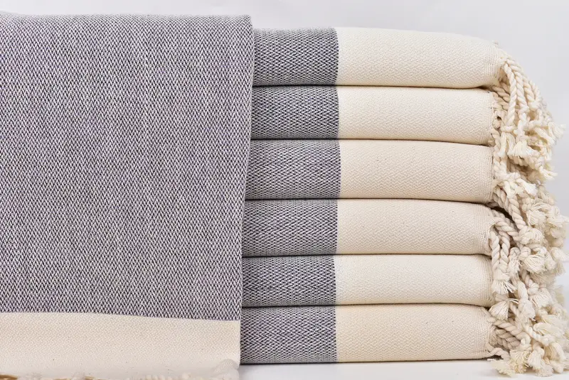 トルコタオルは、高品質のトルコ綿組成が特徴で、高い吸水性と速乾性を保証します。軽量でありながら耐久性に優れた製品となり、40x63 インチ (100x160 cm) のタオルの重さは約 400 グラムです。許容誤差 1 ~ 2.5 cm の手織りタオルは、さまざまな用途に使用できます。