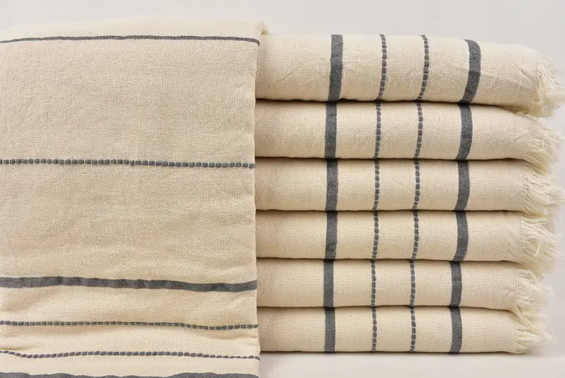 高級トルコ綿タオルは、優れた吸水性と速乾性が特徴です。柔らかな肌触りと耐久性を備えたこれらのタオルは、効率的に水を吸収し、乾燥機を必要とせずにすぐに乾きます。重量は約 460 グラムとなり、タオルのサイズは 40 x 71 インチまたは 100 x 180 cm になりますが、手織り技術により許容されるサイズの変動は 1 ~ 2.5 cm です。