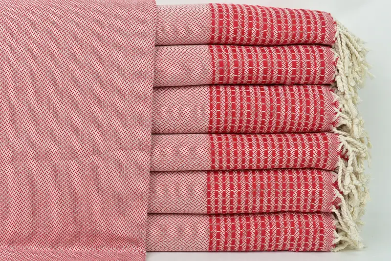 トルコのペシュテマルタオルは、高級トルコ綿を使用しているのが特徴で、優れた吸水性と速乾性を実現しています。伝統的な手織り方法で作られたこれらのタオルの重さは約 420 グラム、寸法は 36 x 69 インチ (91 x 175 cm)、公差は 1 ~ 2.5 cm です。この職人技により、独特の質感と耐久性が生まれます。