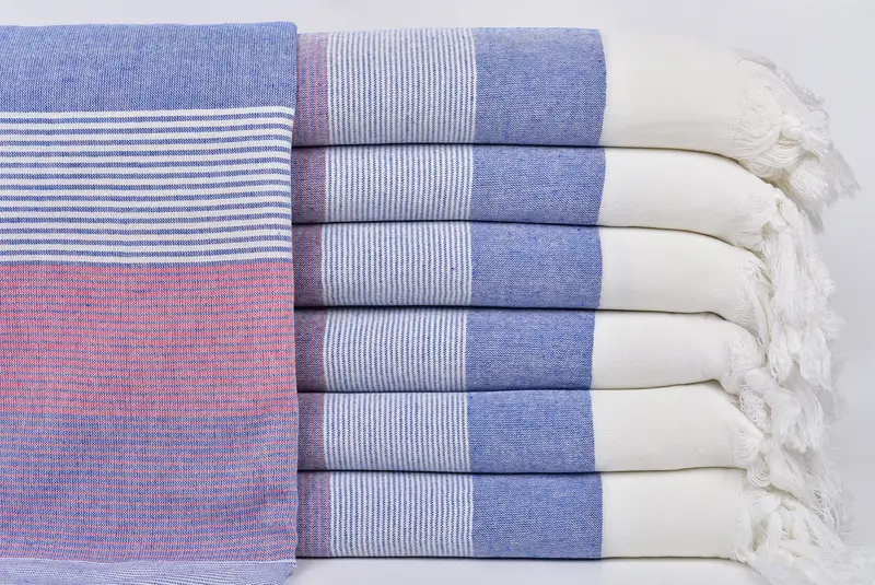 高い吸水性と速乾性を特徴とするプレミアムトルコ綿素材は、さまざまな用途で優れたパフォーマンスを保証します。トルコのビーチタオルのサイズは 40x67 インチまたは 100x170 cm、公差は最大 5 cm、重さは約 260 グラムです。これらのタオルは職人の技術で手織りされているため、寸法に若干の誤差が生じます。