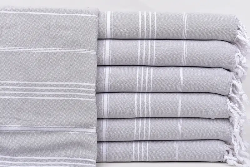 寸法仕様には 40x71 インチのサイズが含まれており、これは 100x180 cm に相当しますが、最大 5 cm までの許容誤差があります。トルコ製ビーチタオルの重さは約265グラムで、軽量でありながら耐久性に優れた製品です。伝統的な技法を守り、丁寧に手織りされたタオルです。