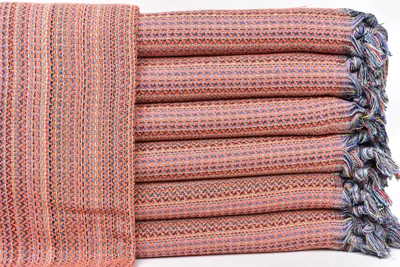 トルコタオルは高級トルコ綿を使用しているのが特徴で、優れた吸水性と速乾性を実現しています。通常、タオルの大きさは 36x71 インチまたは 90x180 cm、重さは約 380 グラムで、公差 1 ~ 2.5 cm で手織りされます。