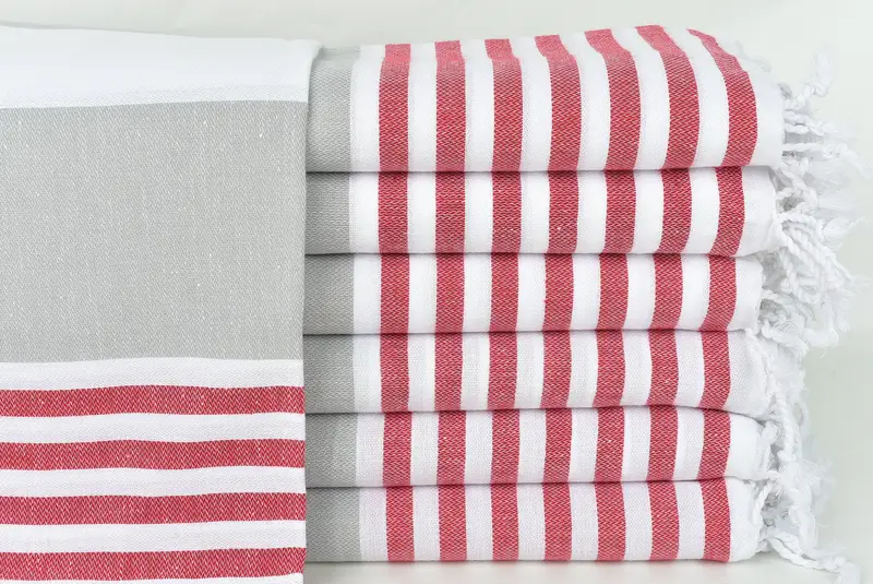 刺繍入りビーチタオル パーソナライズされたトルコ綿 レッドグレーストライプ、40x71インチ
