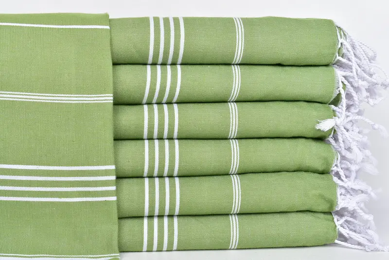 トルコ製バスタオル オーガニックコットン カーキグリーンストライプ、38x73インチ