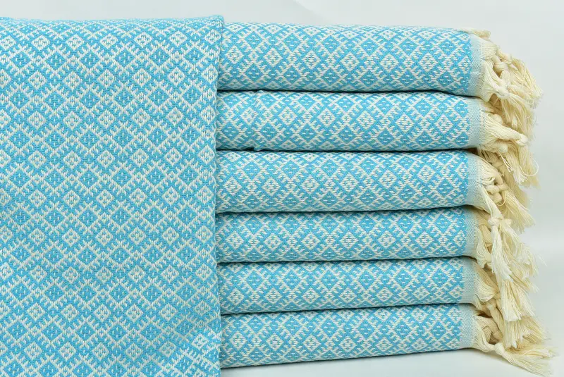 プレミアムトルコ綿タオルは高い吸水性と速乾性を保証しており、キッチンや装飾目的に適しています。サイズは 20x38 インチ (50x95 cm)、公差は 5 cm、各タオルの重さは約 100 グラムです。手織りの為、1〜2.5cmの誤差がございます。