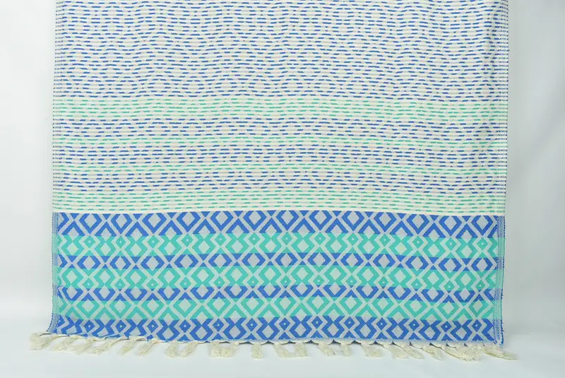 刺繍サックスブルーグリーンダイヤモンドビーチタオル、トルコ綿、40x71インチ