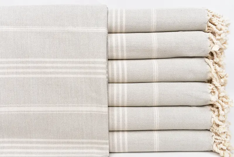 ビーチタオル オーガニック ライトグレー ストライプ ペシュテマル、ベージュ、40x71 インチ