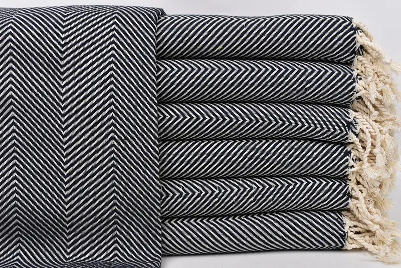 トルコのペシュテマルタオルは優れた吸水性と耐久性が特徴です。伝統的な手織機を使用して作られたこれらのタオルは、トルコ綿から作られており、速乾性があり、資源の使用量が最小限に抑えられています。これらのタオルは重さ約 400 グラム、サイズは 40x71 インチ (100x180 cm) で、最大 5 cm のわずかな公差で安定した品質を維持します。