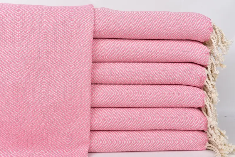 ハンドタオル ピンク シェブロン 20x40 インチ、トルコ綿、ブライドメイドギフト