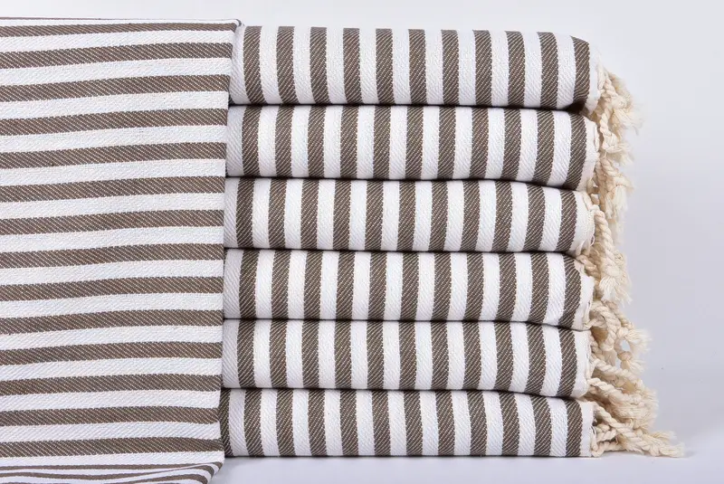 トルコ ハンドタオル フェイスタオル ストライプ ベージュ ナプキン、24x40インチ